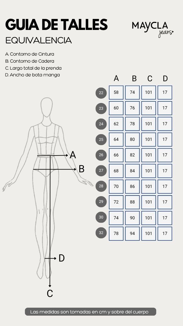 Tomado el talle mas chico y varia un cm por talle