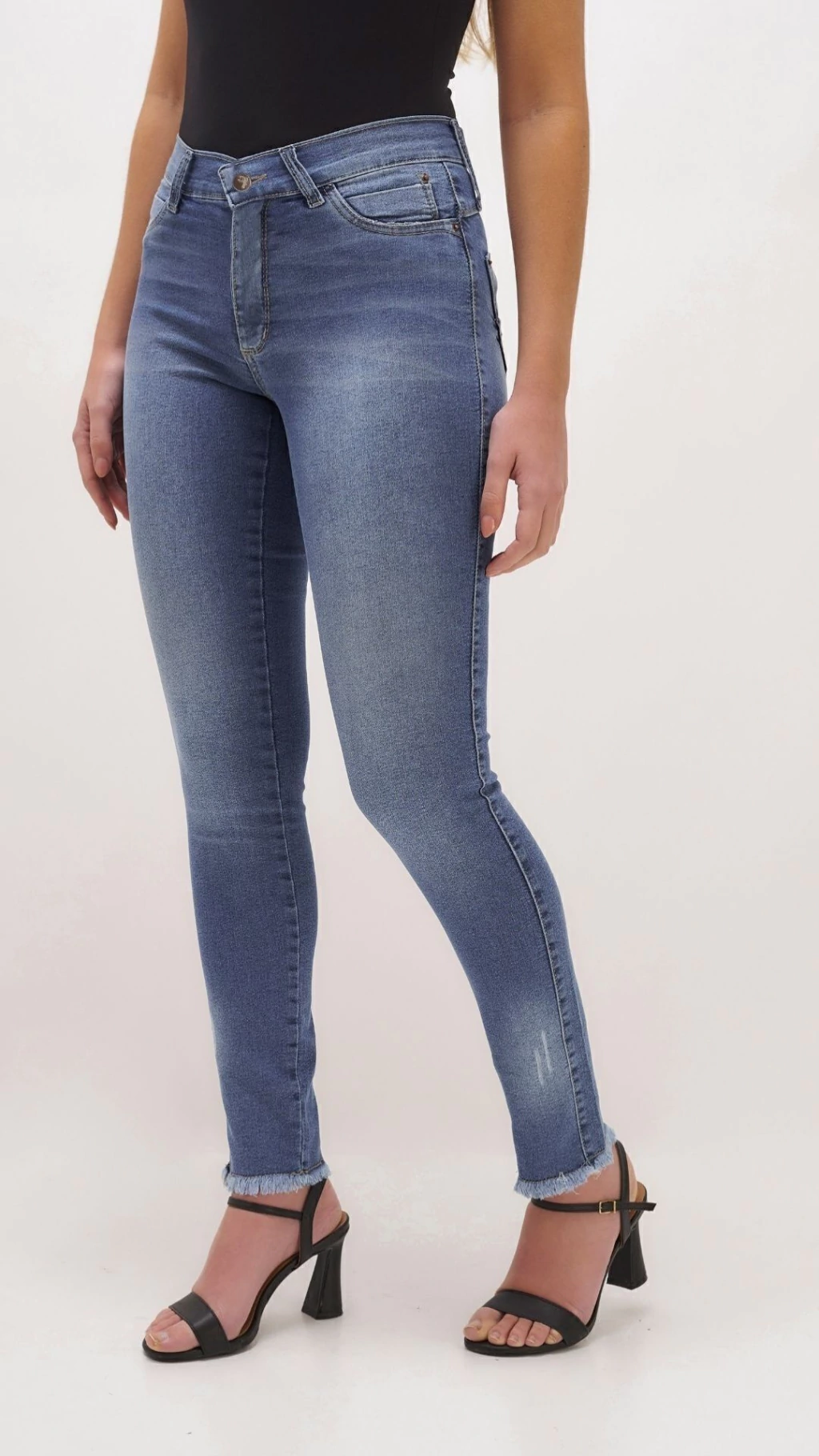 El jean Pavia, chupín azul claro que levanta cualquier look. Tiro medio con un botón para ajustarte como un guante, detalle en el relojero para la onda y ruedo desflecado listo para rockear tu día.